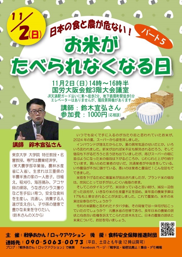 11月のロックアクションは、鈴木宜弘先生の講演会です。